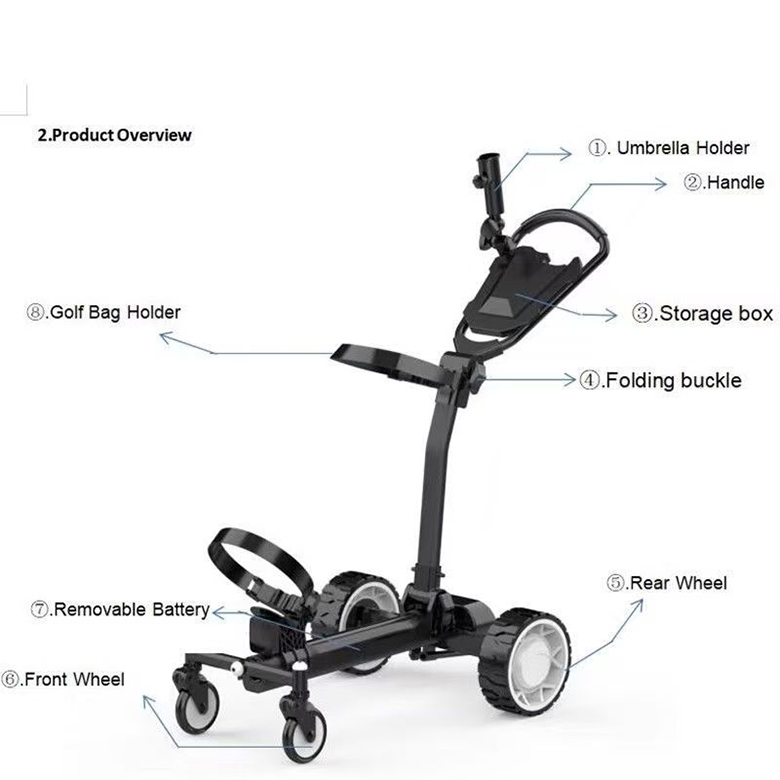 • Electric Golf Push Cart with Remote Control – Up to 36 Hole & 1500 Life Cycle Lithium Battery Twin Motors Lightweight